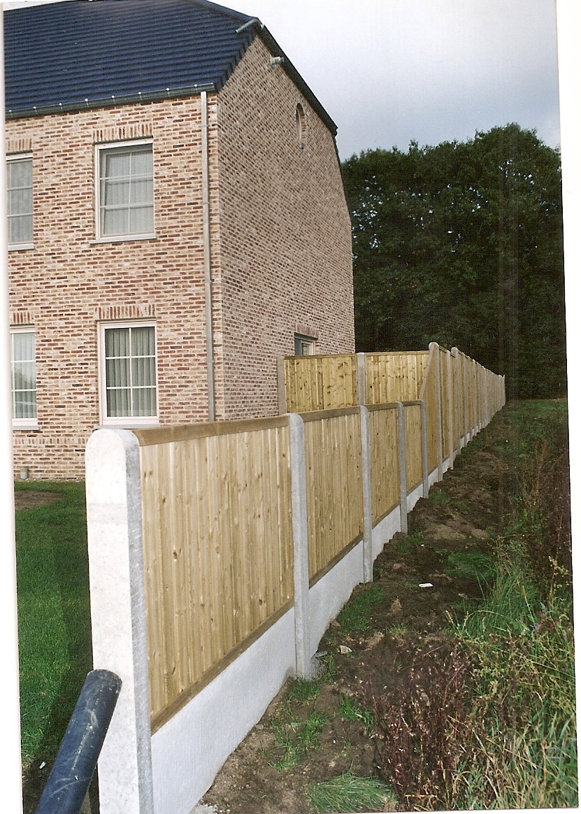 Hier kan u kiezen tussen houten tuinschermen in grenenhout of hardhout met zowel houten als betonnen palen. Image: